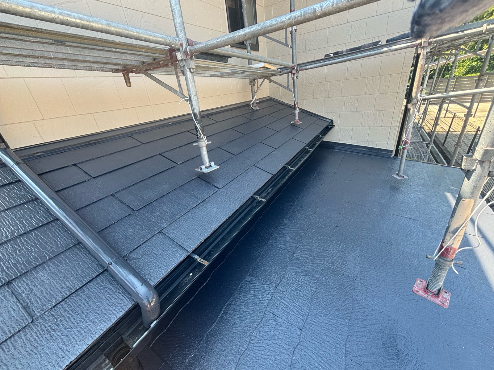 こちらが、下屋屋根塗装の施工完了後の仕上がりです。
